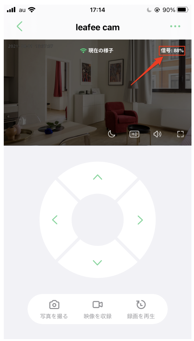 信号強度が70%以下の場合、Wi-Fiのルーターとカメラの距離を縮めることをお試しいただきますようお願いいたします。