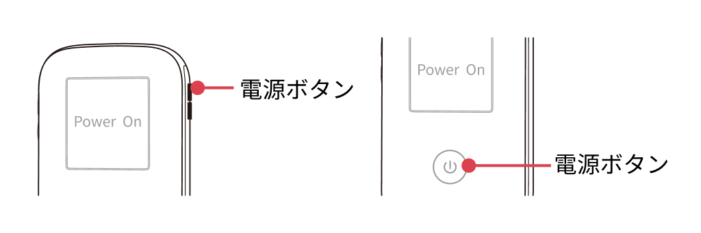 お手持ちの機器の種類によって、電源ボタンの位置が異なりますのでご注意ください。