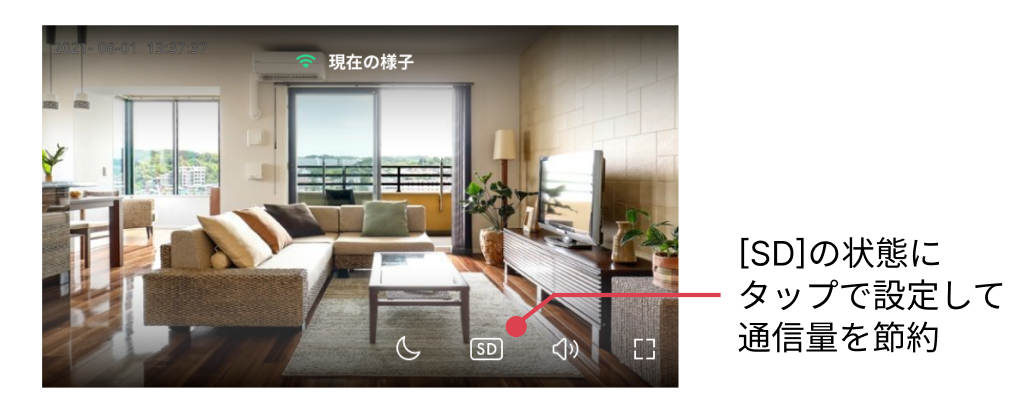 本製品には1日(24時間あたり)70MBの通信量制限があります。本製品のデータ通信量には1日(24時間あたり)の制限量があります。この値を超えると通信が制限され、アプリからカメラの映像を再生できなくなります。24時間のはじまりは、AM9時です。翌日AM9時にデータ通信の使用量は0にリセットされます。また、通信制限も翌日AM9時に解除されます。通信は主に、アプリからカメラのライブ映像や録画映像を確認した際に発生します。1日(24時間あたり)の間にアプリとカメラが接続をして、映像を確認できる目安の合計時間は、HD画質でおよそ7分間程度・SD画質でおよそ42分程度です。そのため、アプリからライブ映像を確認する場合には、画質設定を「SD」に設定した状態でご確認いただくことを推奨しております。
