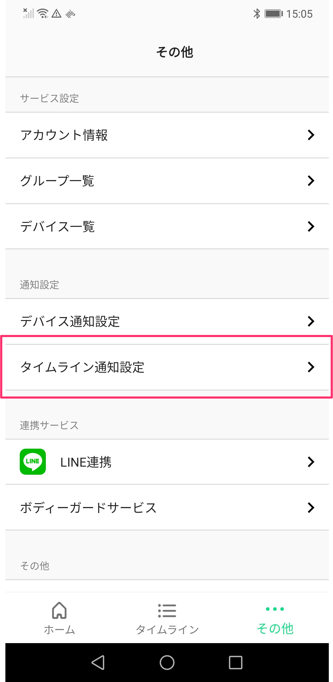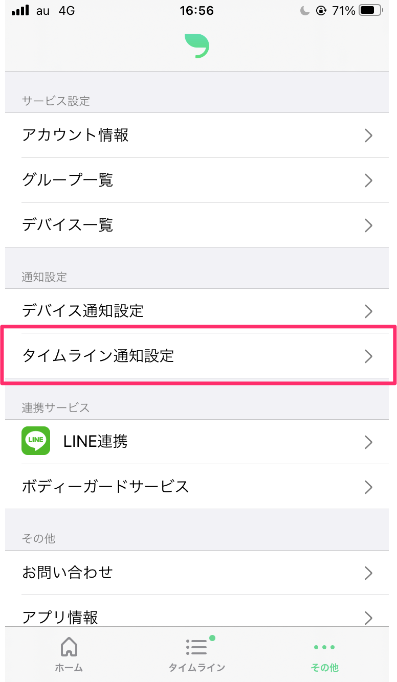 ②「タイムライン通知設定」をタップする