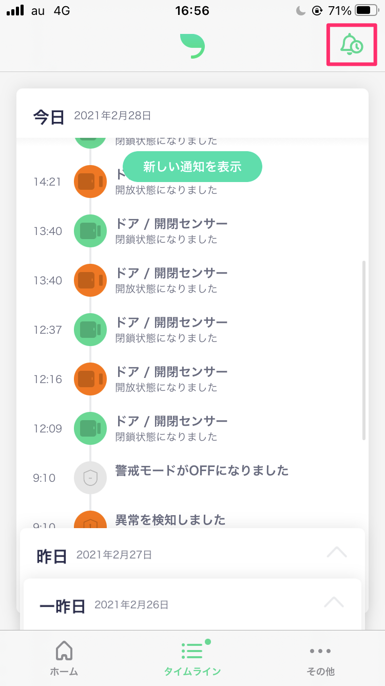 よる21:00の通知は、当日0:00〜21:00までのセンサーの反応状況をお知らせします。