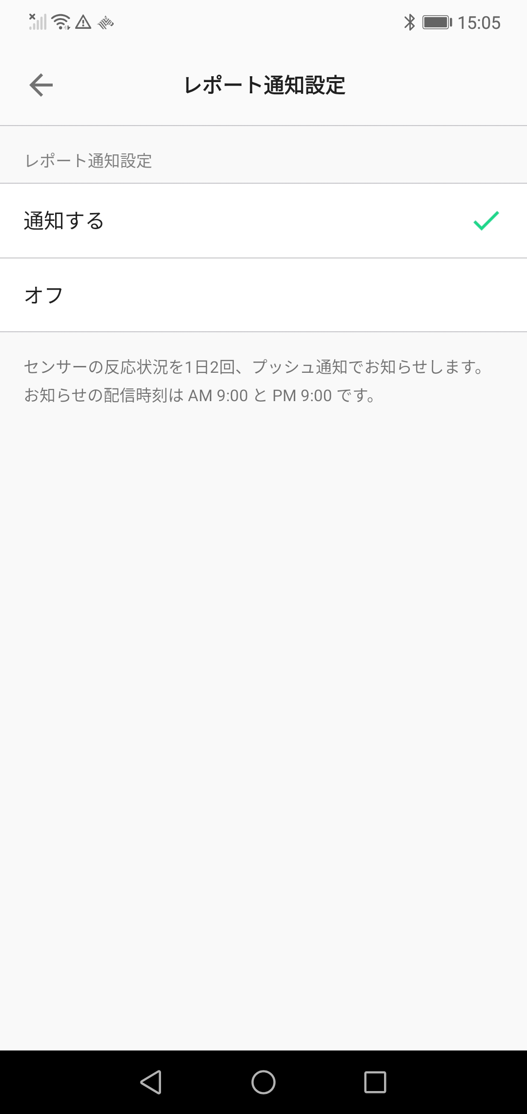 レポート通知は、何も設定しない状態だと「通知オフ」に設定されています。