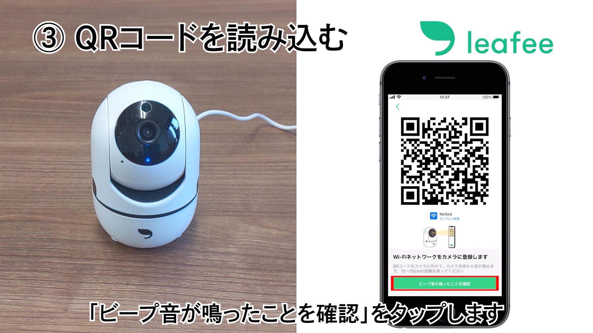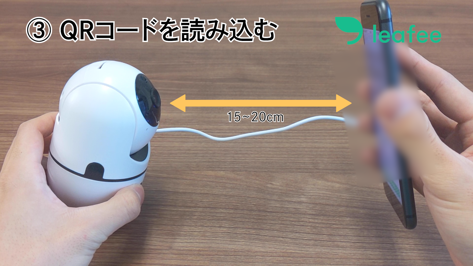 スキャンが完了すると、カメラ本体から音が鳴ります。※ QR コードとカメラの距離を 15~20cm 程度に保ってください。 うまくスキャンできない場合、QR コードをゆっくり前後させてください。