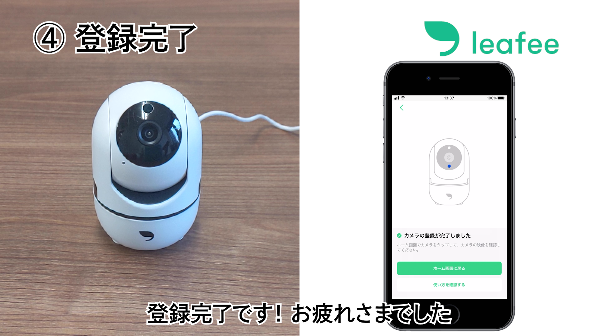 カメラから音がなり、アプリが登録完了画面になったら登録完了です。