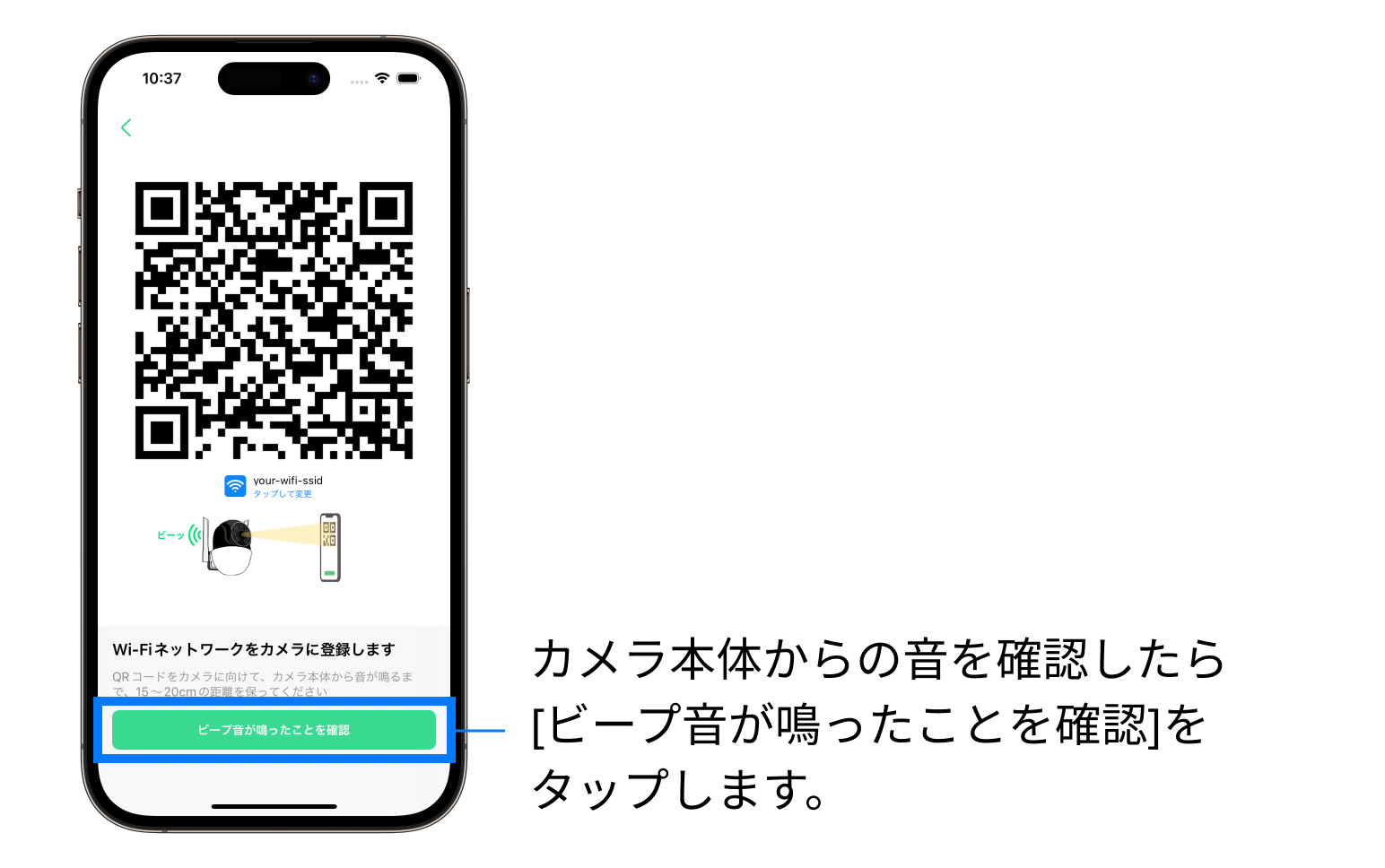 7. 音を確認後[ビープ音が鳴ったことを確認] をタップします。