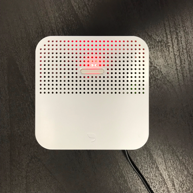 音声ガイダンスが流れるのと同時に、leafee hub のLEDが「赤点滅」になったことが確認できたら、初期化完了です。