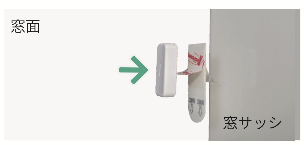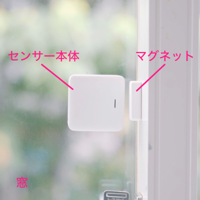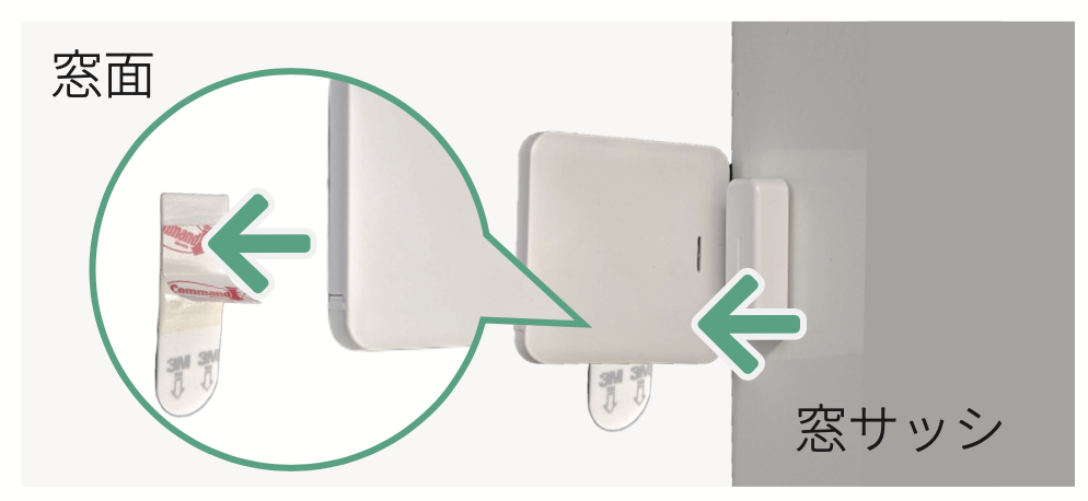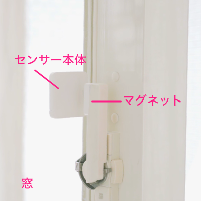 窓表面にセンサー本体、窓サッシにマグネットを取り付けます。